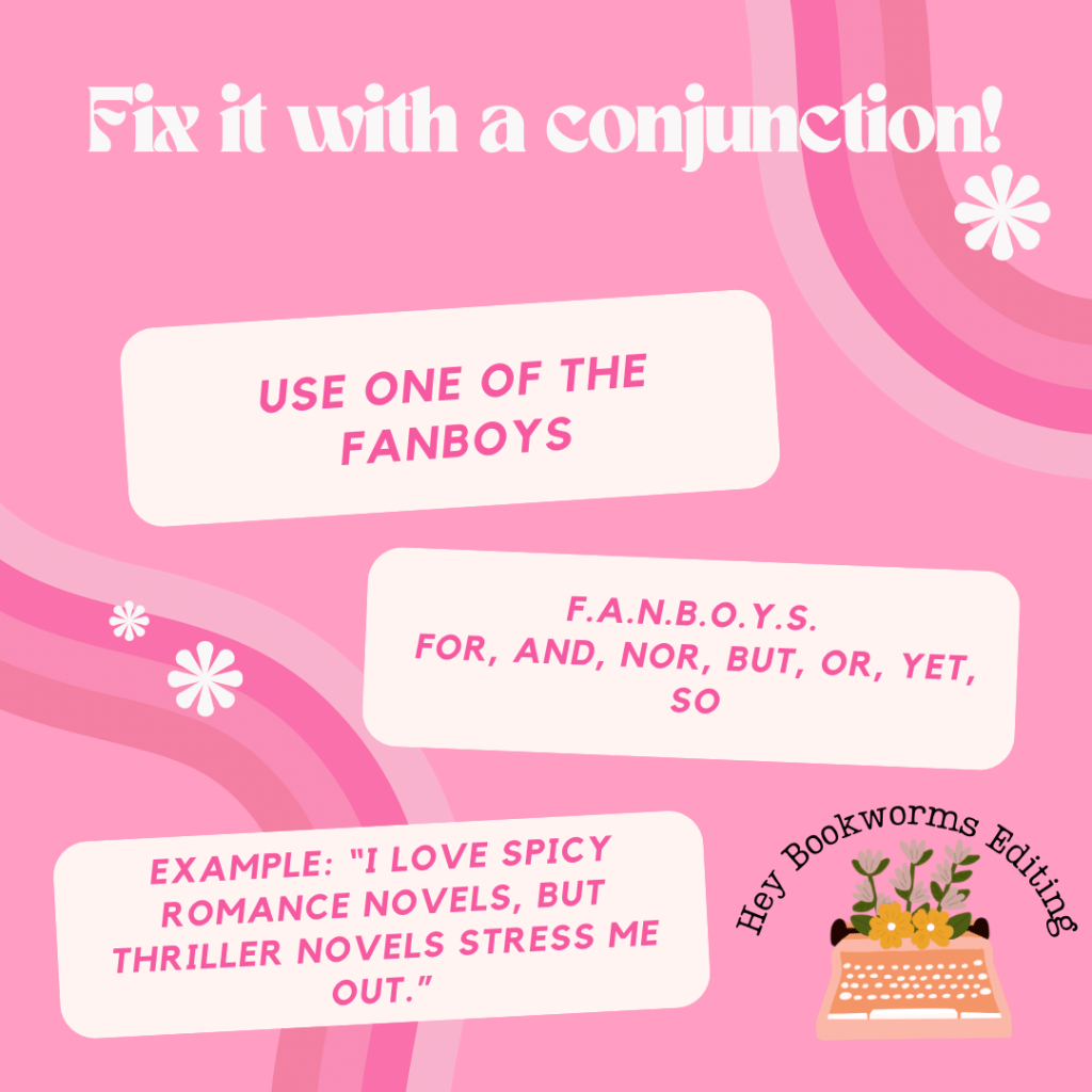 Let’s throw it back to freshman English. Fanboys, do yall remember those? I’ll be honest, I forgot to use them all the time before I really got into focusing on grammar and writing.