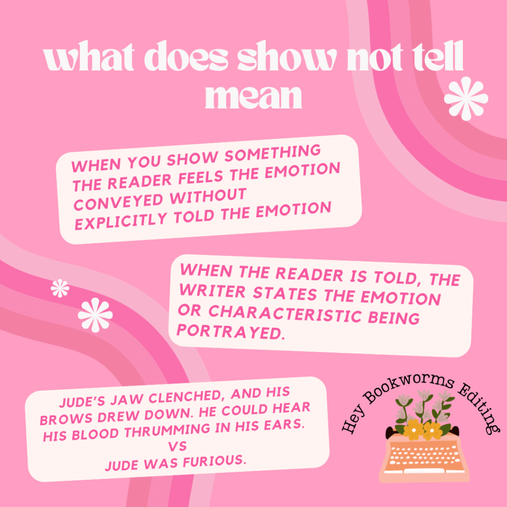 Show don’t tell is a phrase authors and writers hear constantly. Whether it’s from writing coaches or reviewers, it’s almost always at the forefront of any analysis of writing. What does that phrase even mean though?